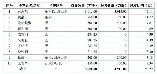 图源:《回复函》 北交所也对此进行问询,要求说明公司销售人员与业务规模的匹配性。海圣医疗称,公司整体销售人员数量略有增长,但与整体客户数量相匹配。2024年,公司为进一步促进销售业务发展,新增包括15名销售人员,而销售人员培养周期长,因此整体业绩虽实现增长,但人均产出存在一定的波动,具有合理性。 03 黄氏家族持股73.67%, 版图涉及酒业、包装等 《招股书》显示,海圣医疗的实际控制人为黄海生和吴晓晔夫妇。 黄海生生于1962年4月,拥有硕士研究生学历,是专业医生出身,1985年至2000年在四家不同的医院做了15年医生。2000年,黄海生结束了自己的医生生涯,创立了海圣医疗,并任公司董事长兼总经理至今。 吴晓晔则生于1962年11月,本科学历,在1986年至1993年当了7年教师后,转行进入医院当了13年的药剂师,此后,2006年,吴晓晔再次完成职业转身,进入了海圣医疗成为公司行政部职员并任职至今。 截至2025年上半年末,黄海生直接持有海圣医疗47.11%的股份,是公司控股股东;吴晓晔持有励新投资20.6%的财产份额,并通过励新投资间接控制海圣医疗7.81%的股份;二人合计控制公司54.92%的股份。 值得一提的是,作为一家浙江企业,海圣医疗有着较为浓重的家族色彩。 《招股书》显示,今年10月30日,黄海生、吴晓晔、黄燕、黄彩丽和王增华五人签署协议成为一致行动人,其中黄燕和黄彩丽是黄海生的侄女和妹妹,王增华则是黄海生的姐夫。黄燕担任公司董事,王增华是公司行政部职员。不过黄彩丽目前并未在海圣医疗任职。 截至目前,黄燕、黄彩丽和王增华分别直接持有海圣医疗11.72%、4.69%和2.34%的股份,合计持股18.75%。也就是说,黄氏家族合计持有海圣医疗73.67%的股份。 “公司创业初期,公司股权集中,所有权人拥有绝对控股权,有利于企业决策和执行;在成长阶段,公司股权集中,企业可以保持稳定,但家司不分,家族往往掌握着公司最好的资源,公司治理容易不规范。公司IPO是企业成熟的标志,为适应外部发展环境,企业战略势必要重新定位,对应的是治理结构调整,不可避免的涉及领导班子、管理架构等人事重大调整。”经济学家王赤珅表示。 此外,黄海生和吴晓晔的儿子黄玮也在海圣医疗任董事和副总经理,不过他并未直接持有公司股份。